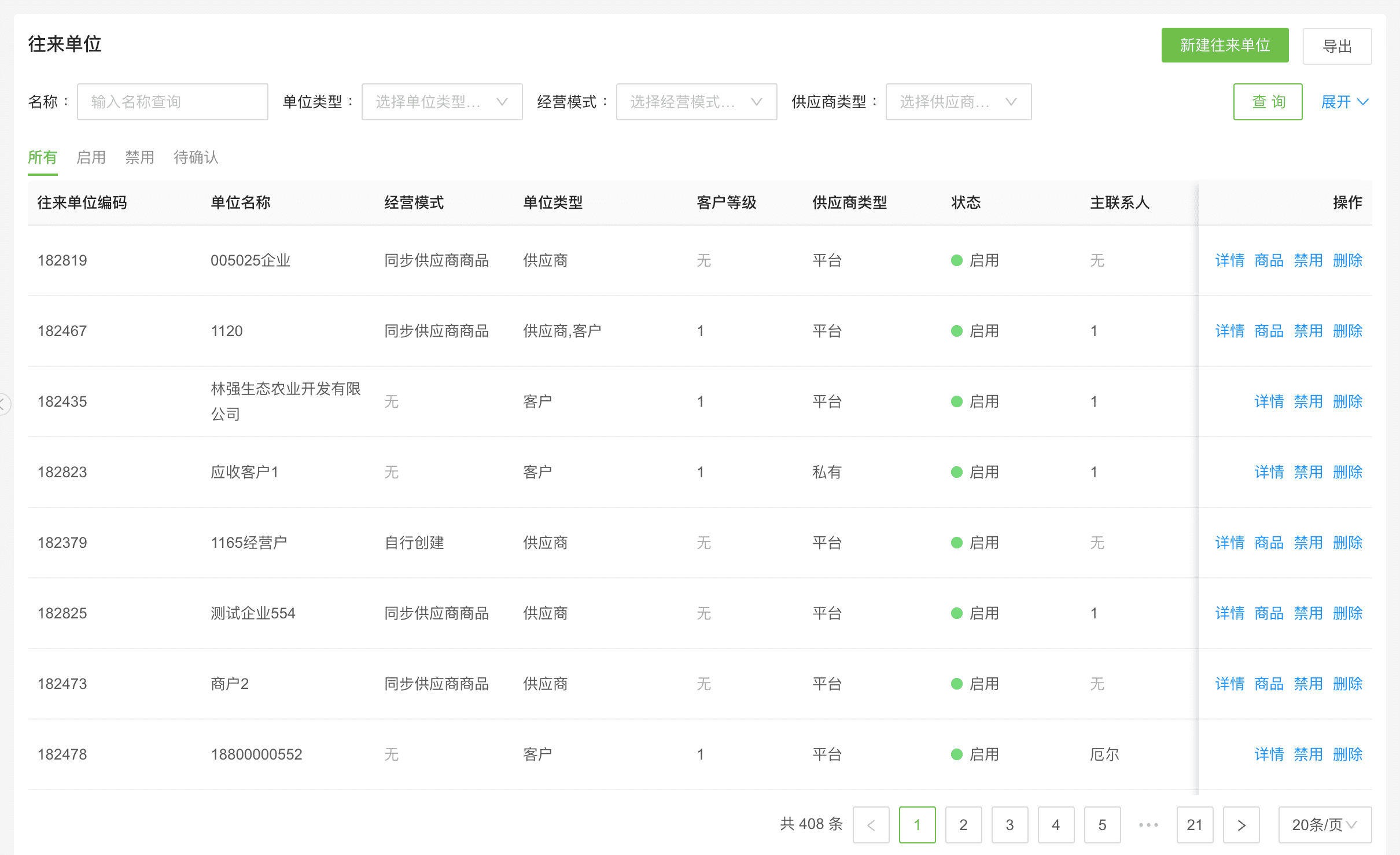 往来单位